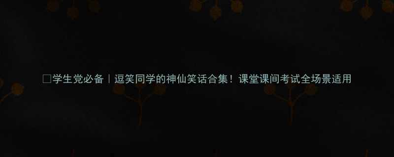 💡学生党必备|逗笑同学的神仙笑话合集!课堂/课间/考试全场景适用