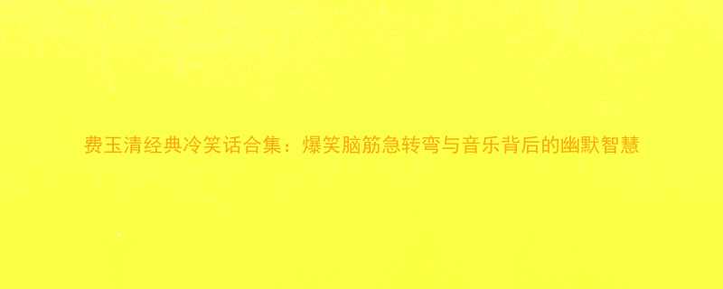 费玉清经典冷笑话合集:爆笑脑筋急转弯与音乐背后的幽默智慧
