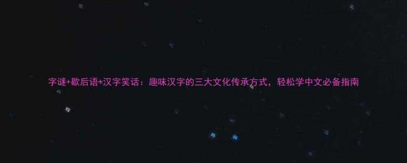 字谜+歇后语+汉字笑话:趣味汉字的三大文化传承方式,轻松学中文必备指南(1200+字)