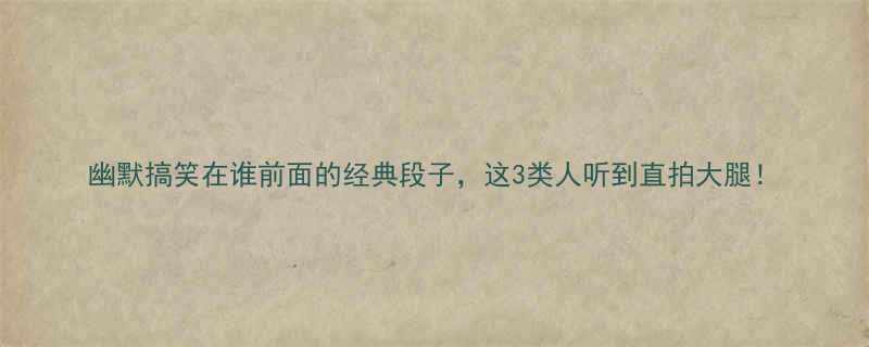 【幽默搞笑】在谁前面的经典段子,这3类人听到直拍大腿!