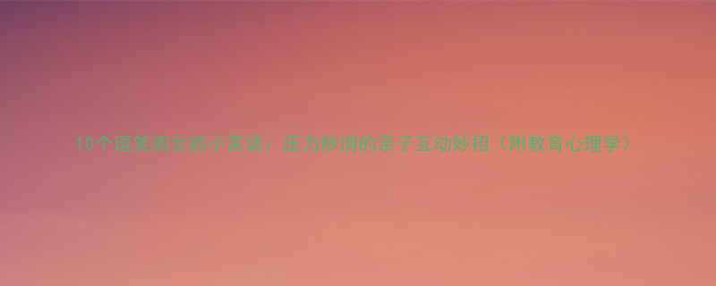 《10个逗笑闺女的小笑话:压力秒消的亲子互动妙招(附教育心理学)》