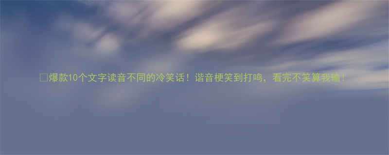 姐妹们!今天给家人们整点硬核的谐音冷笑话合集!这些文字读音不同的神操作,分分钟让你笑到捶墙!建议先备好纸巾,小心笑出眼泪哦~