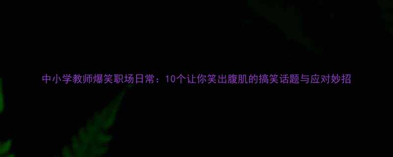 【中小学教师爆笑职场日常:10个让你笑出腹肌的搞笑话题与应对妙招】