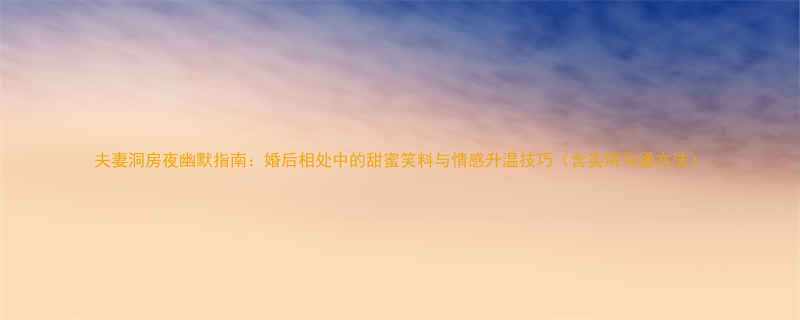 夫妻洞房夜幽默指南:婚后相处中的甜蜜笑料与情感升温技巧(含实用沟通方法)