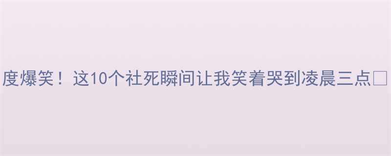度爆笑!这10个社死瞬间让我笑着哭到凌晨三点💥