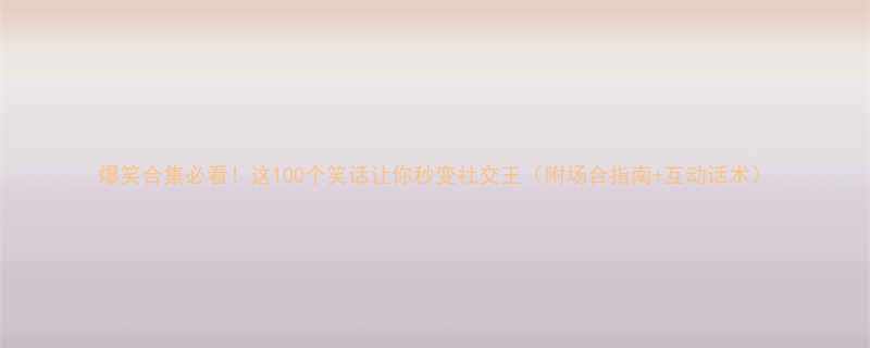 【爆笑合集】必看!这100个笑话让你秒变社交王(附场合指南+互动话术)
