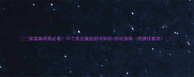 🀄️家庭麻将局必看!10个笑出腹肌的冷知识+防坑指南(附牌技教学)🀄️