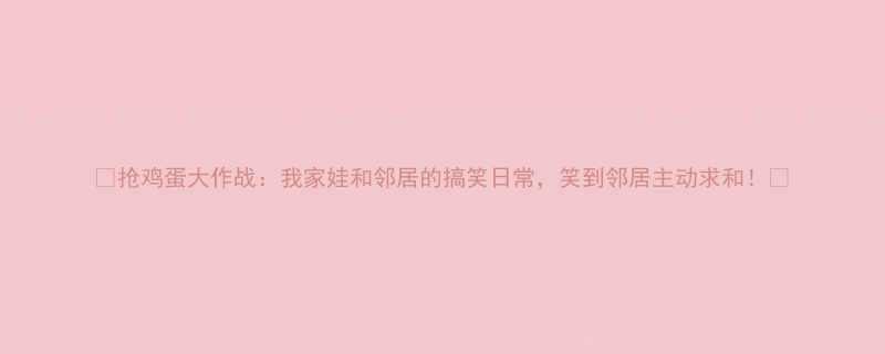 🔥《抢鸡蛋大作战:我家娃和邻居的搞笑日常,笑到邻居主动求和!》🔥