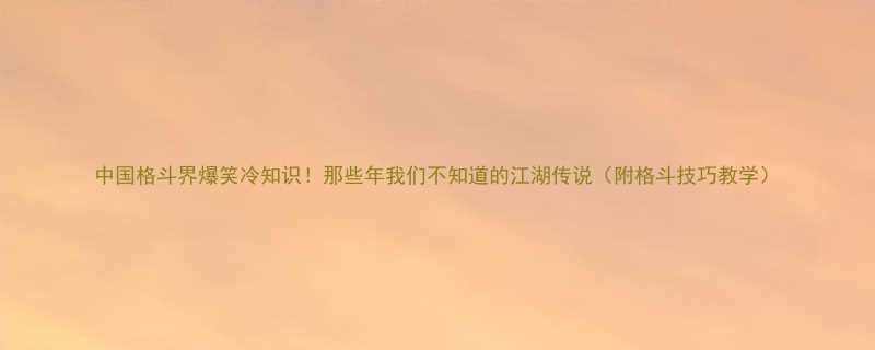 中国格斗界爆笑冷知识!那些年我们不知道的江湖传说(附格斗技巧教学)