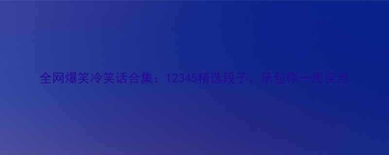 全网爆笑冷笑话合集:12345精选段子,承包你一周笑点