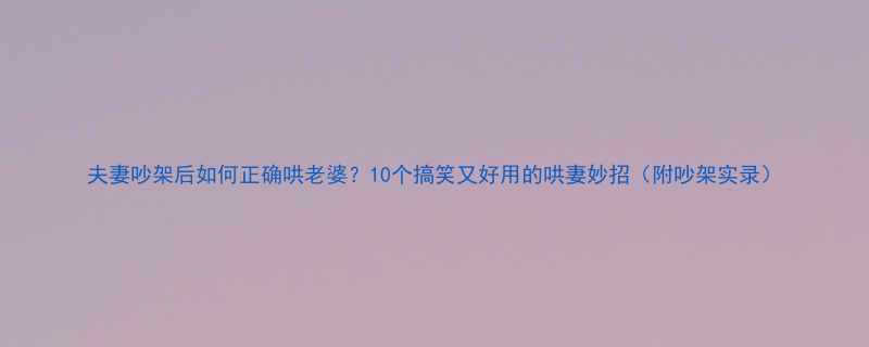 夫妻吵架后如何正确哄老婆?10个搞笑又好用的哄妻妙招(附吵架实录)