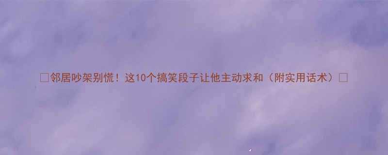 ✨邻居吵架别慌!这10个搞笑段子让他主动求和(附实用话术)🤣
