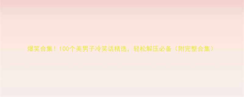 爆笑合集!100个美男子冷笑话精选,轻松解压必备(附完整合集)