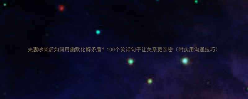 夫妻吵架后如何用幽默化解矛盾?100个笑话句子让关系更亲密(附实用沟通技巧)