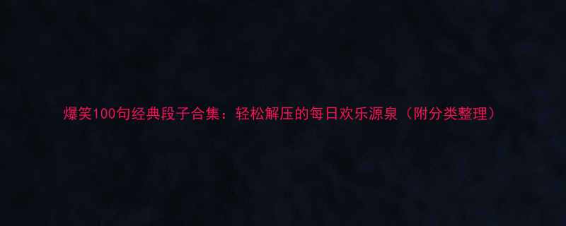 爆笑100句经典段子合集:轻松解压的每日欢乐源泉(附分类整理)