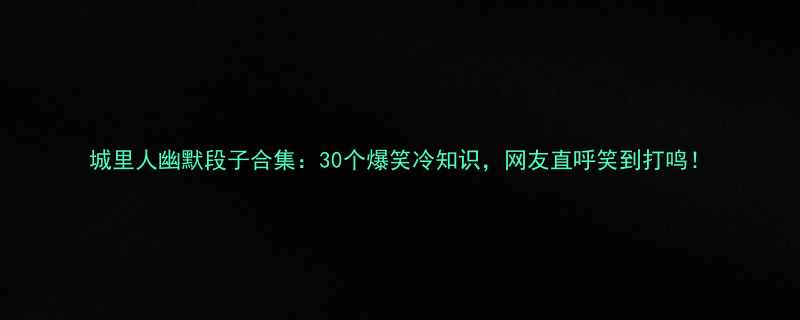 城里人幽默段子合集:30个爆笑冷知识,网友直呼"笑到打鸣"!