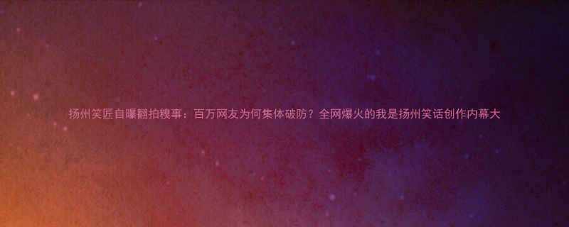 《扬州笑匠自曝翻拍糗事:百万网友为何集体破防?全网爆火的"我是扬州笑话"创作内幕大》