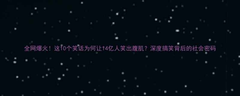 【全网爆火!这10个笑话为何让14亿人笑出腹肌?深度搞笑背后的社会密码】