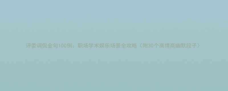 《评委调侃金句100例:职场/学术/娱乐场景全攻略(附30个高情商幽默段子)》