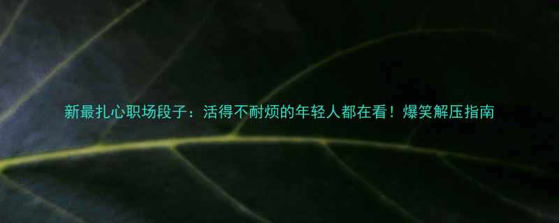 新最扎心职场段子:活得不耐烦的年轻人都在看!爆笑解压指南
