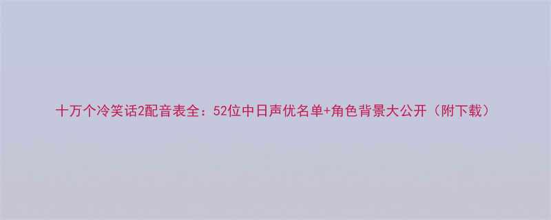 十万个冷笑话2配音表全:52位中日声优名单+角色背景大公开(附下载)