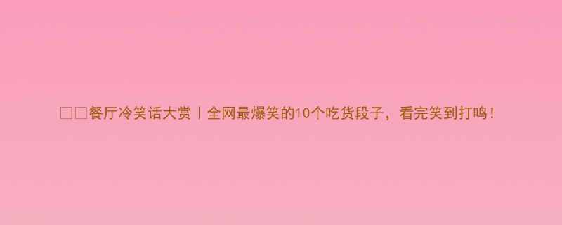 🍽️餐厅冷笑话大赏|全网最爆笑的10个吃货段子,看完笑到打鸣!