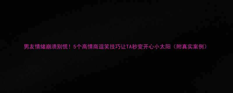 "男友情绪崩溃别慌!5个高情商逗笑技巧让TA秒变开心小太阳(附真实案例)"