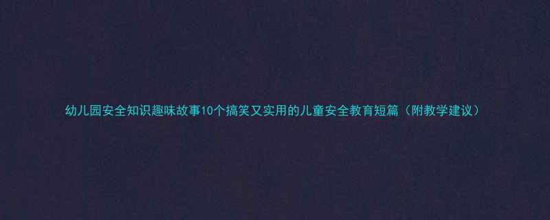 【幼儿园安全知识趣味故事 | 10个搞笑又实用的儿童安全教育短篇(附教学建议)】