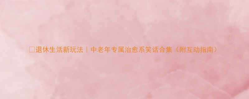 ✨退休生活新玩法|中老年专属治愈系笑话合集(附互动指南)