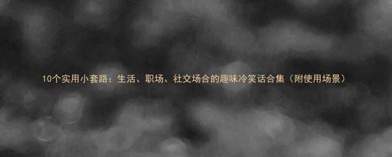 《10个实用小套路:生活、职场、社交场合的趣味冷笑话合集(附使用场景)》