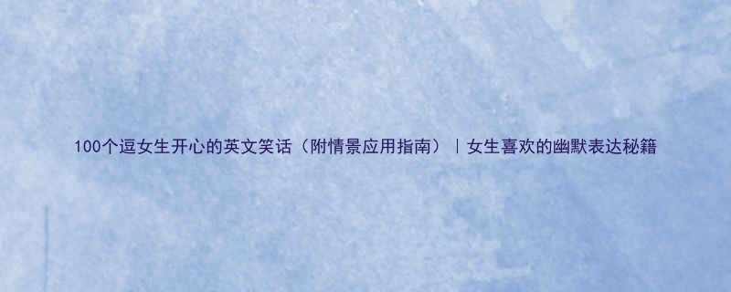 100个逗女生开心的英文笑话(附情景应用指南)|女生喜欢的幽默表达秘籍