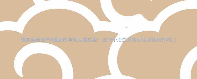 【爆笑解压】被996逼疯的年轻人看这里!这30个治愈系笑话让我笑到打鸣🤣