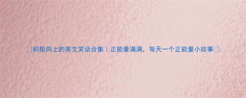 🌟积极向上的英文笑话合集|正能量满满,每天一个正能量小故事✨