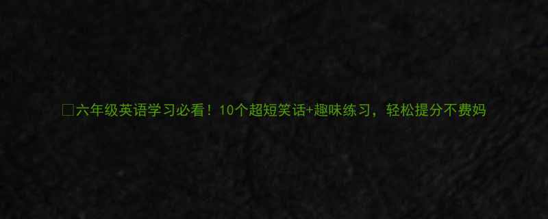 📚六年级英语学习必看!10个超短笑话+趣味练习,轻松提分不费妈