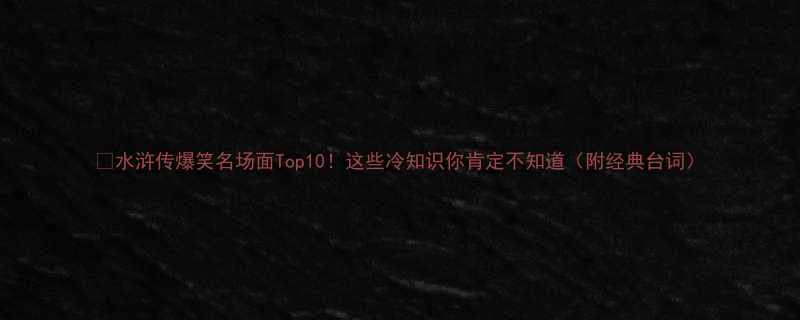 📚《水浒传》爆笑名场面Top10!这些冷知识你肯定不知道(附经典台词)