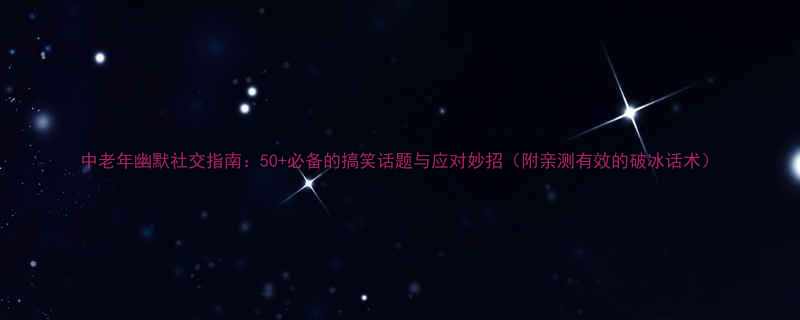 《中老年幽默社交指南:50+必备的搞笑话题与应对妙招(附亲测有效的破冰话术)》