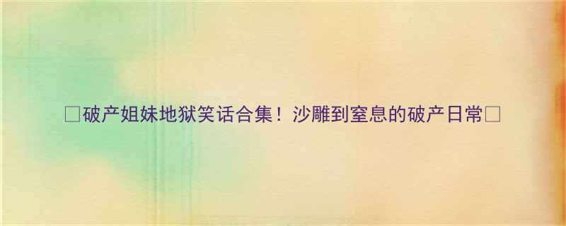 💥《破产姐妹地狱笑话合集!沙雕到窒息的破产日常💥》