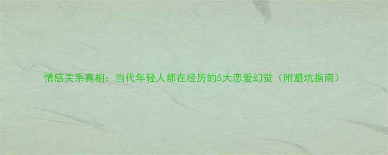 情感关系真相:当代年轻人都在经历的5大恋爱幻觉(附避坑指南)