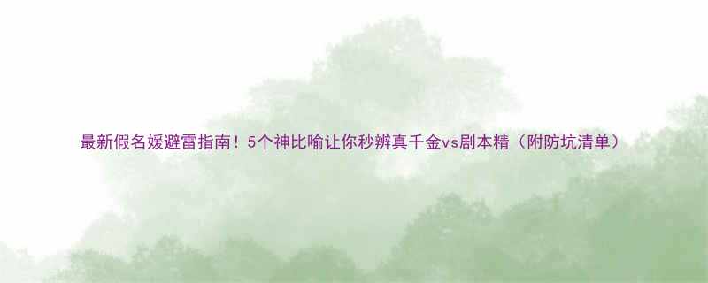 《最新假名媛避雷指南!5个神比喻让你秒辨真千金vs剧本精(附防坑清单)》