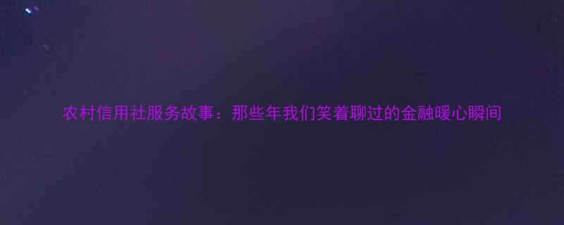 《农村信用社服务故事:那些年我们笑着聊过的金融暖心瞬间》
