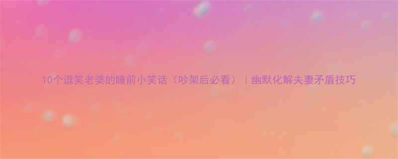 《10个逗笑老婆的睡前小笑话(吵架后必看)|幽默化解夫妻矛盾技巧》