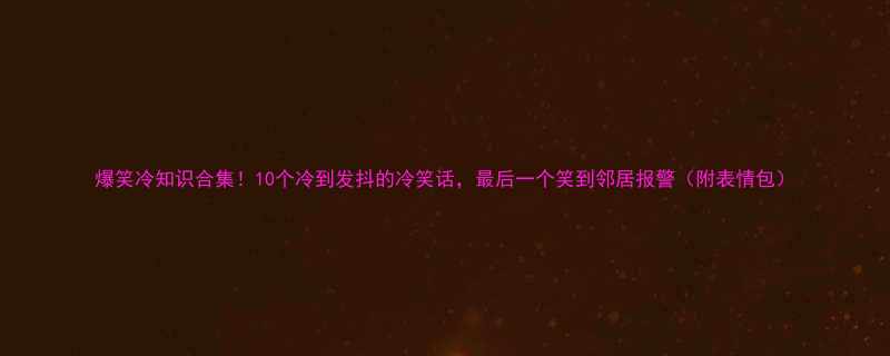 【爆笑冷知识合集!10个冷到发抖的冷笑话,最后一个笑到邻居报警(附表情包)】