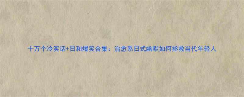 《十万个冷笑话+日和》爆笑合集:治愈系日式幽默如何拯救当代年轻人