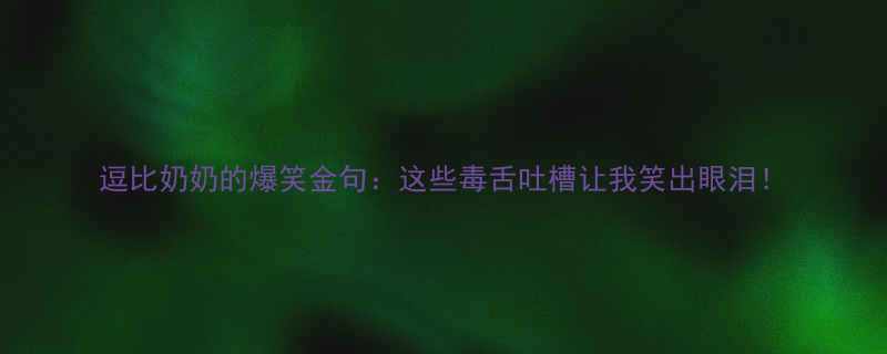 逗比奶奶的爆笑金句:这些"毒舌"吐槽让我笑出眼泪!