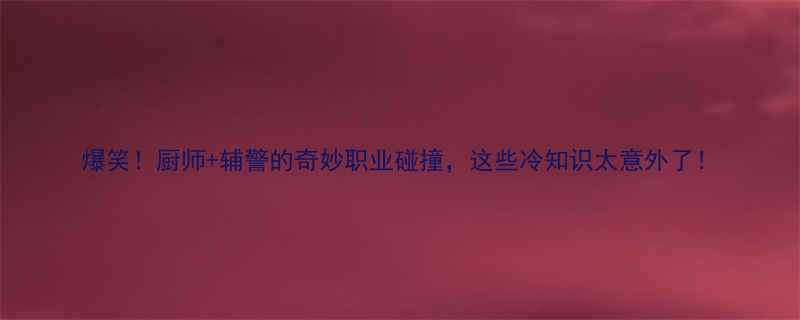 爆笑!厨师+辅警的奇妙职业碰撞,这些冷知识太意外了!
