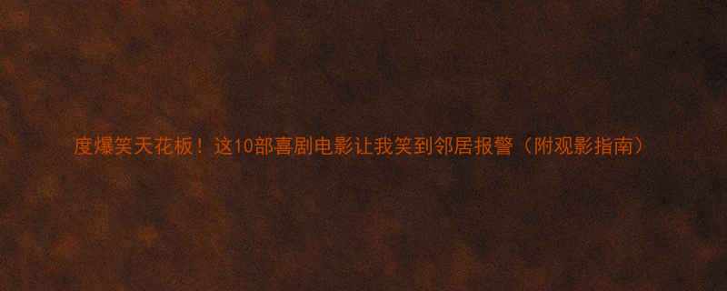 度爆笑天花板!这10部喜剧电影让我笑到邻居报警(附观影指南)