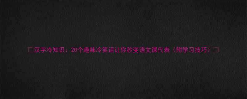 ✨【汉字冷知识:20个趣味冷笑话让你秒变语文课代表(附学习技巧)】✨