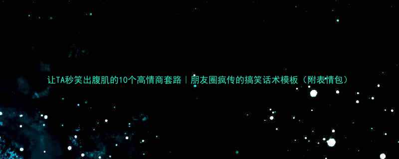 "让TA秒笑出腹肌的10个高情商套路|朋友圈疯传的搞笑话术模板(附表情包)"