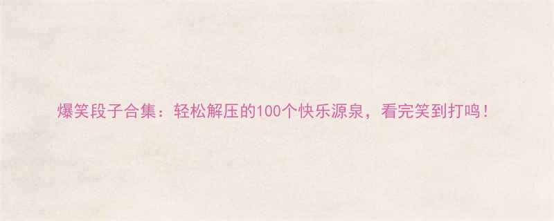 【爆笑段子合集:轻松解压的100个快乐源泉,看完笑到打鸣!】