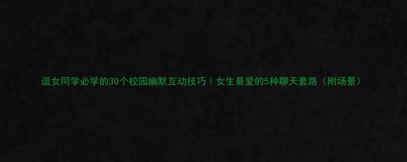 逗女同学必学的30个校园幽默互动技巧|女生最爱的5种聊天套路(附场景)